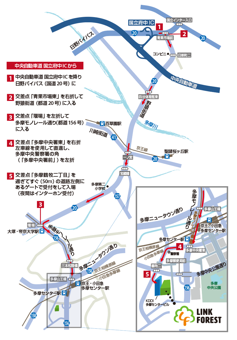 多摩センター駅を背後に、ココリア(1F スターバックス)の角を右折。左手に「〒」マークの建物が見えるまで直進。